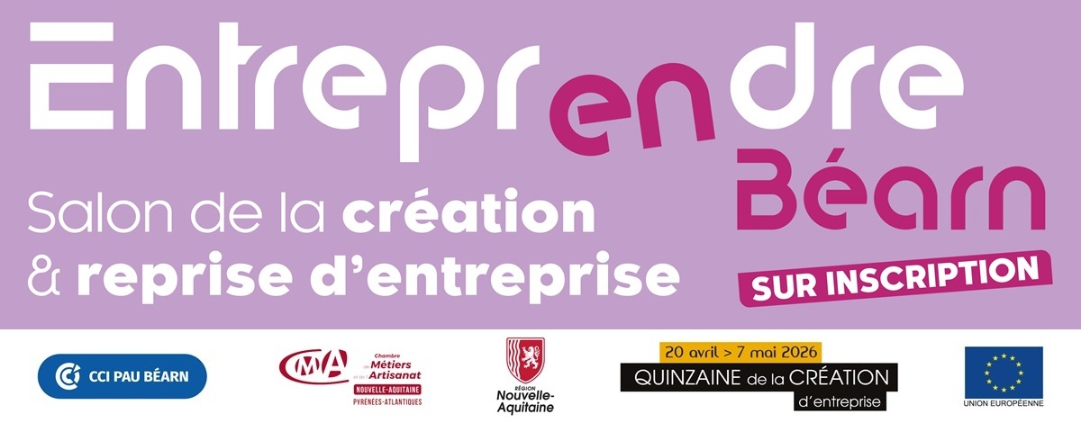 Entreprendre en Béarn, le salon de la création & reprise d’entreprise, est organisé dans le cadre de la Quinzaine de la création d’entreprise en Nouvelle-Aquitaine par la Chambre de Commerce et d’Industrie Pau Béarn et la Chambre de Métiers et de l’Artisanat des Pyrénées-Atlantiques, en partenariat avec la Région Nouvelle-Aquitaine.